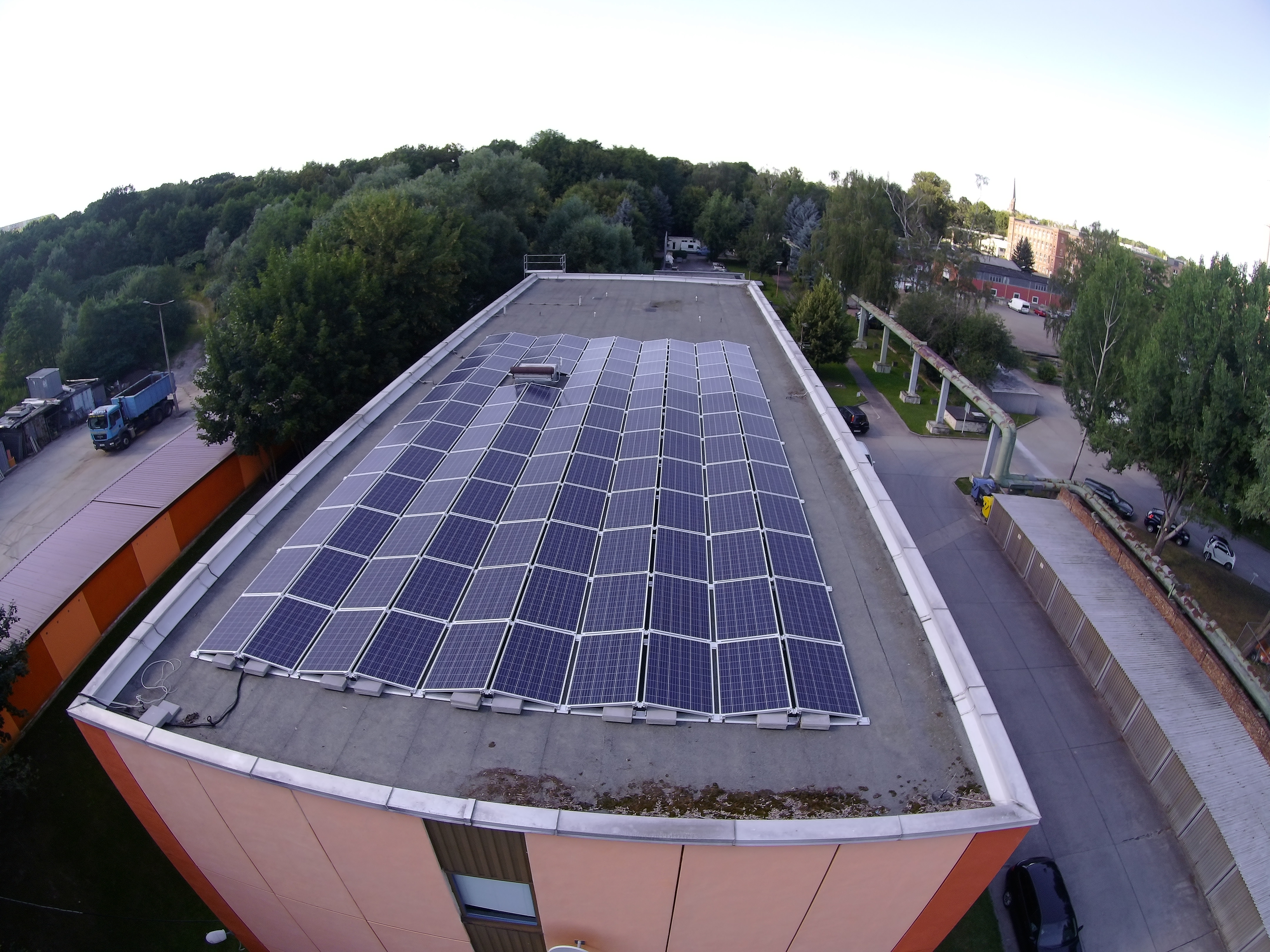 Photovoltaikanlage 29,835 kWp UG3300 UG3300 Standort: Chemnitz / Sachsen Unterkonstruktion: PMT, durchdringungsfreie Ost -West Aufständerung Module: HeckertSolar 250Wp, polykristallin Wechselrichter: SolarEdge Inbetriebnahme: 07/2016